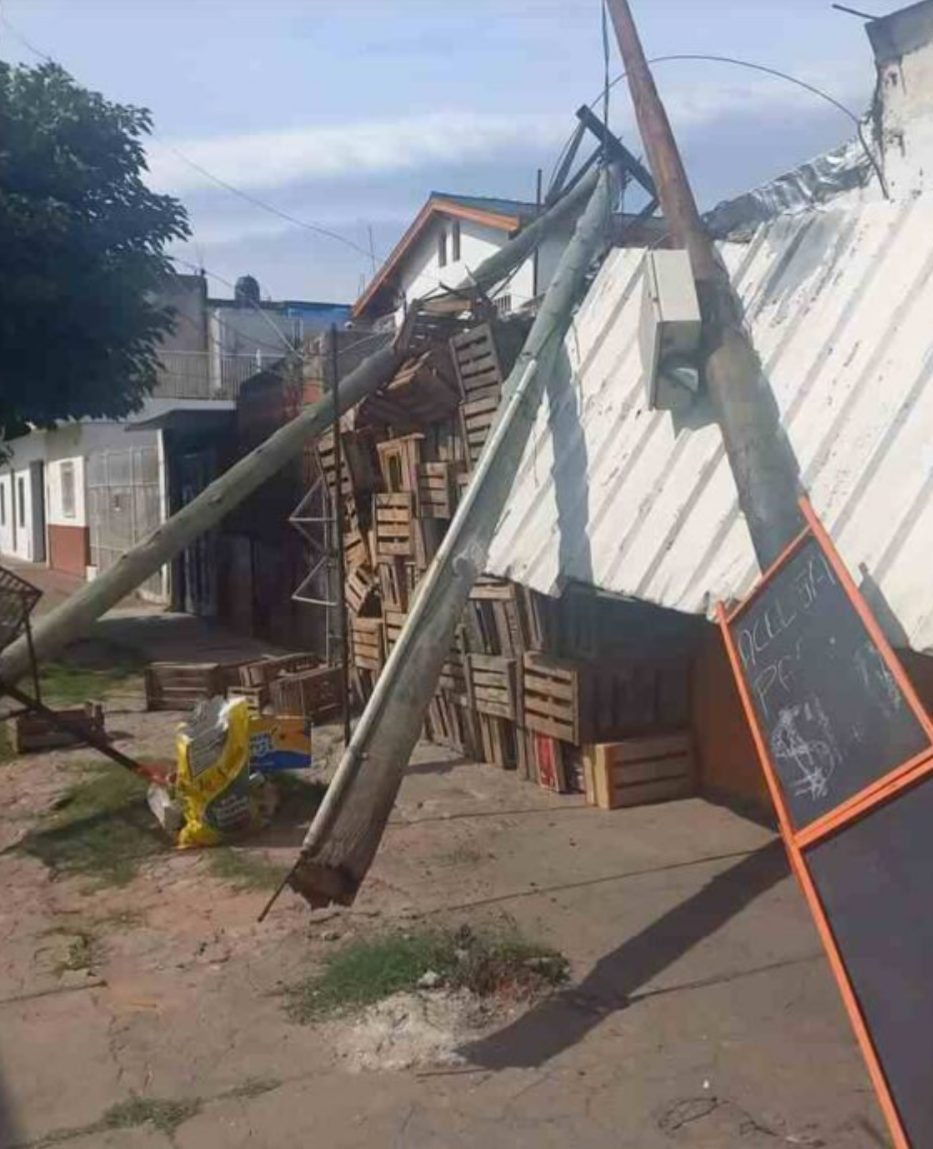 El accidente ocurrió este miércoles en Juan B Justo y Einstein, Quilmes Oeste. Los postes impactaron sobre una verdulería, lo que provocó importantes daños, pero no víctimas.