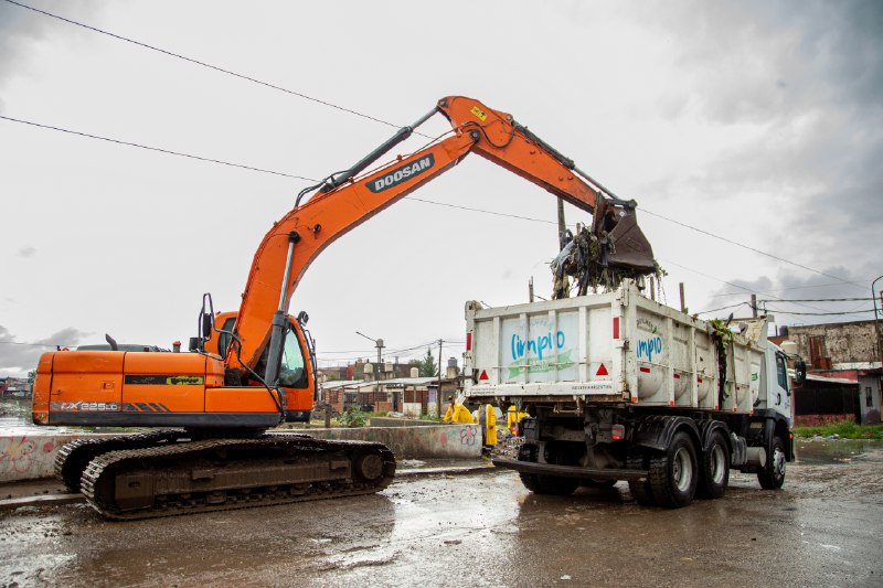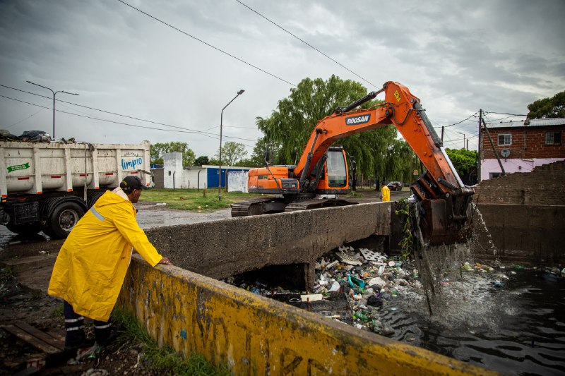 Personal de la Secretaría de Servicios Públicos, trabajó con retroexcavadoras, camiones, bateas y maquinaria pesada durante la tormenta para evitar posibles desbordes y anegamientos que afectaran a los vecinos y vecinas de los distintos barrios del distrito, poniendo en funcionamiento las labores que por indicación de Mayra Mendoza, se hacen dentro del protocolo de emergencias que tiene la Municipalidad cuando hay alertas por tormenta.