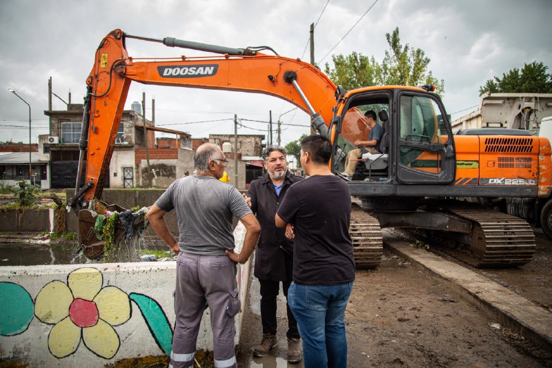 «Estamos en la zona del Triángulo de Bernal, más precisamente en Victorica y Bermejo, con los equipos de Agua y Cloaca trabajando en la desobstrucción del arroyo. Cayó mucha agua durante la madrugada y el pluviómetro que tenemos en la estación de bombeo de Villa Luján nos marcó 17 milímetros. Por eso, vinimos con todos los equipos a este punto en particular porque acá empieza el conducto pluvial, pero las tareas se desarrollan en todos los cruces de los arroyos».