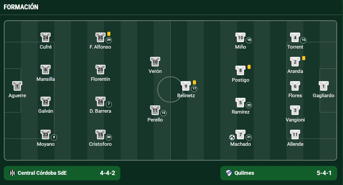 Quilmes estuvo a la altura del partido. Sin embargo, Central tuvo una doble cuando Matías Perelló rompió el offside y remató para que se luzca Gagliardo; en continuación de la jugada, Barrera le pegó a la carrera y la bola besó el palo derecho del guardametas cervecero. Quilmes dominó con el paso del tiempo y en una combinación entre Machado y Leandro Allende motivó el remate de este, que sacó Aguerre. Salvo una bola en donde a Gagliardo le pasó por debajo de su suela y motivó un susto, nunca dio señales frágiles el equipo de Sergio Rondina. El gol llegó con una gran corrida de Miño por derecha, que metió centro pasado. La defensa se quedó en la marca de Belinetz y Machado, por detrás, la acomodó y le pegó con alma y vida. El 1 a 0 permitió al Cervecero saber jugar con el resultado a favor. Central Córdoba solo tuvo un remate forzado de Cabral por derecha que se fue cerca del palo y un cabezazo desviado.