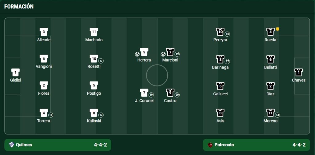 Quilmes y Patronato se plantaron en el campo con intenciones distintas. Por el lado local, puso como prioridad la ofensiva y el buscar el arco. Pocas veces logró coordinar ataques certeros que permitan ilusionar al hincha decano con algo. Por el lado visitante, se posicionó con un 4-4-2 prolijo en donde nadie sobresalió pero todos apostaron a la contra.