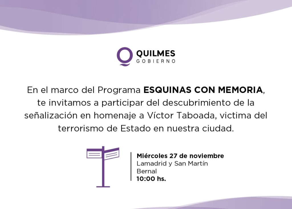 Mi compañero era miembro del Buró Político del PRT y combatiente del ERP, integraba la Compañía de Monte Ramón Rosa Giménez en Tucumán. Todos los carteles de señalización de cada compañero/a detenido/a desaparecidos/as cuentan con un QR donde pueden leer un resúmen de su historia personal, trabajo realizado por el reciente Equipo Investigador de la Secretaría de Derechos Humanos de Quilmes, creado para llevar adelante esta campaña Esquinas Con Memoria.