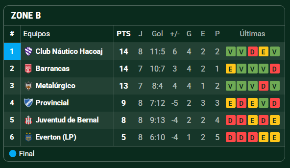 El primer tiempo el partido fue muy peleado en los primeros minutos. En este contexto, Náutico Hacoaj aprovechó la pelota parada para acercarse a la valla de Juventud; y tuvo las más peligrosas por esa vía. Tres corners: uno casi olímpico, uno que pegó en travesaño y un cabezazo que se fue muy cerca del palo. Por su parte, Juventud de Bernal intentó jugar por bajo. Sus ocasiones claras fueron un mano a mano que se definió desviado y dos tapadas del golero visitante. En este contexto, mereció más el elenco local porque, a pesar de ser peleado, las ocasiones más claras fueron del equipo papelero.
