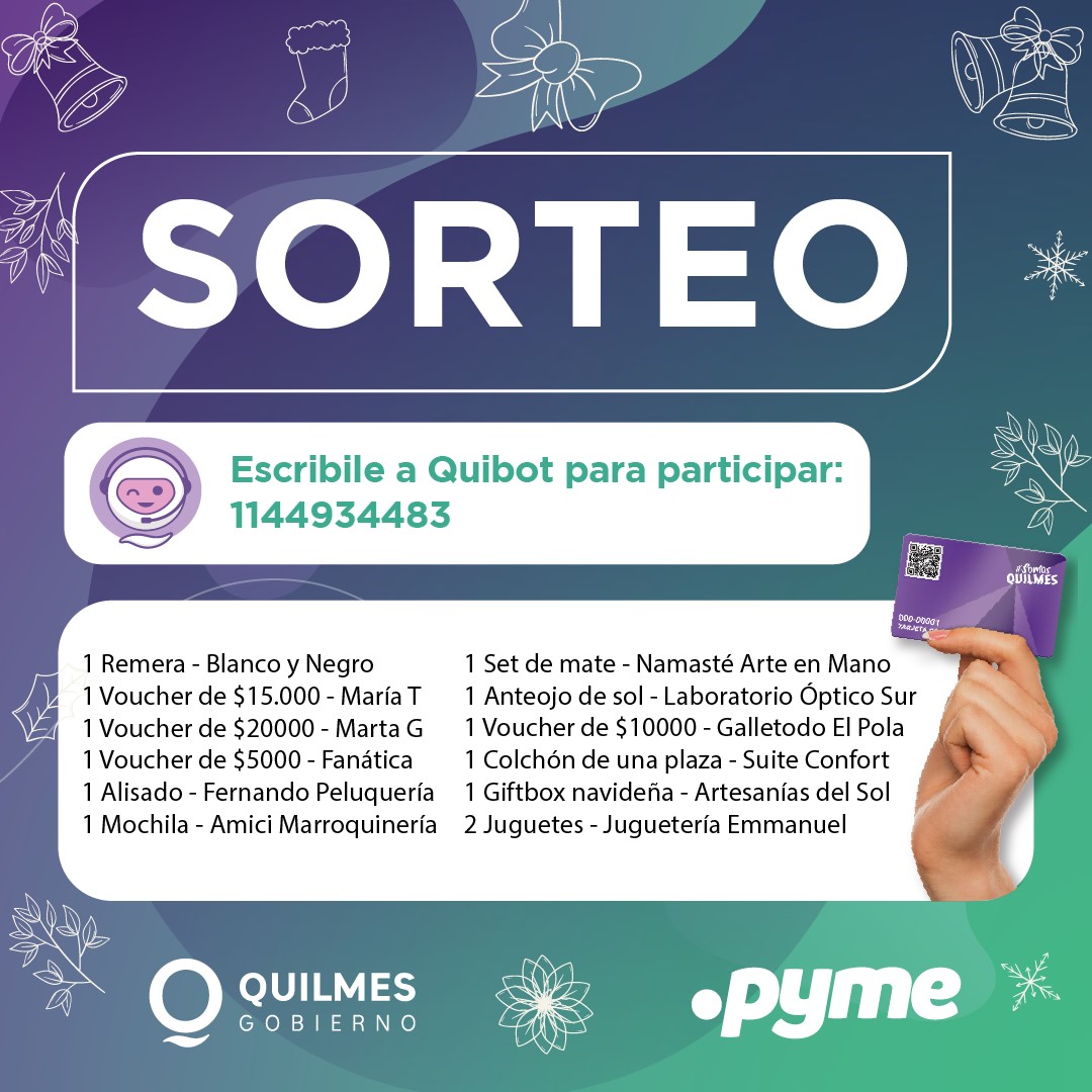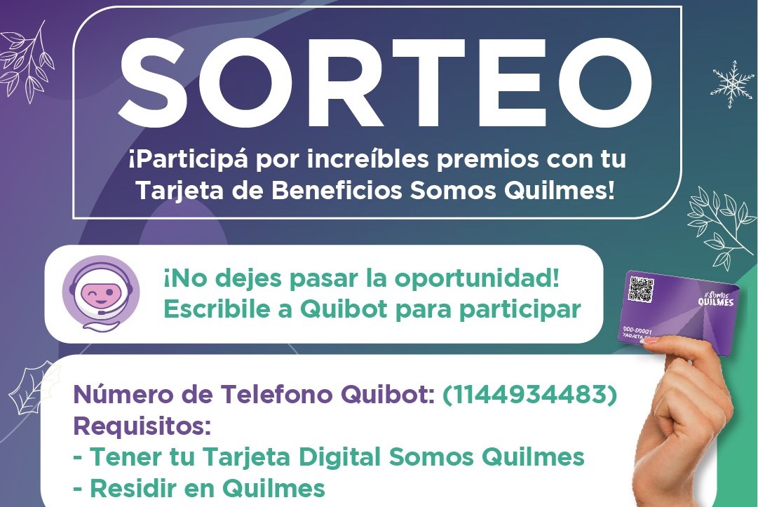 Los requisitos son tener más de 18 años, residir en Quilmes y tener o tramitar la Tarjeta de Beneficios en su versión digital. Asimismo, recibirán las bases y condiciones del sorteo antes de confirmar la participación, la cual estará vigente hasta el 25/12.