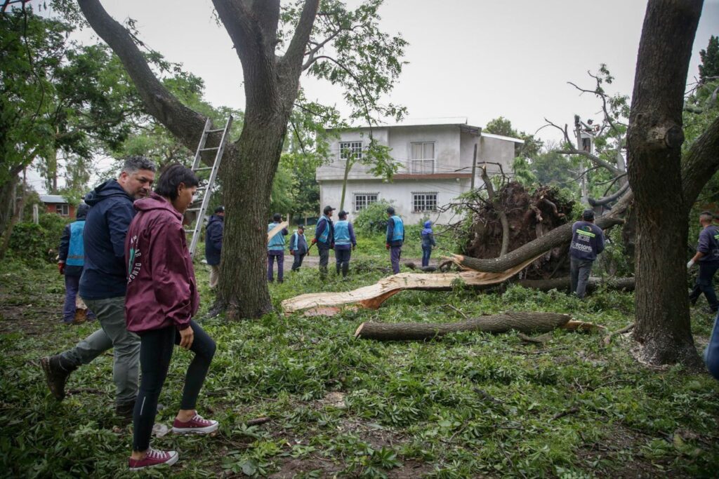 El operativo contó con la colaboración de 98 trabajadores de tres cooperativas que dispuso la Provincia (Fuerza al Alma, Nuevo Horizonte y Las Gaviotas); camiones de servicios públicos, volcadores, retropala y minipala, y cuadrillas de alumbrado público, que estuvieron limpiando y liberando las calles de los árboles y ramas caídos. También se está trabajando en ordenar el posteado y cableado, por los postes de luz caídos y en mal estado, que complican la situación del suministro eléctrico.