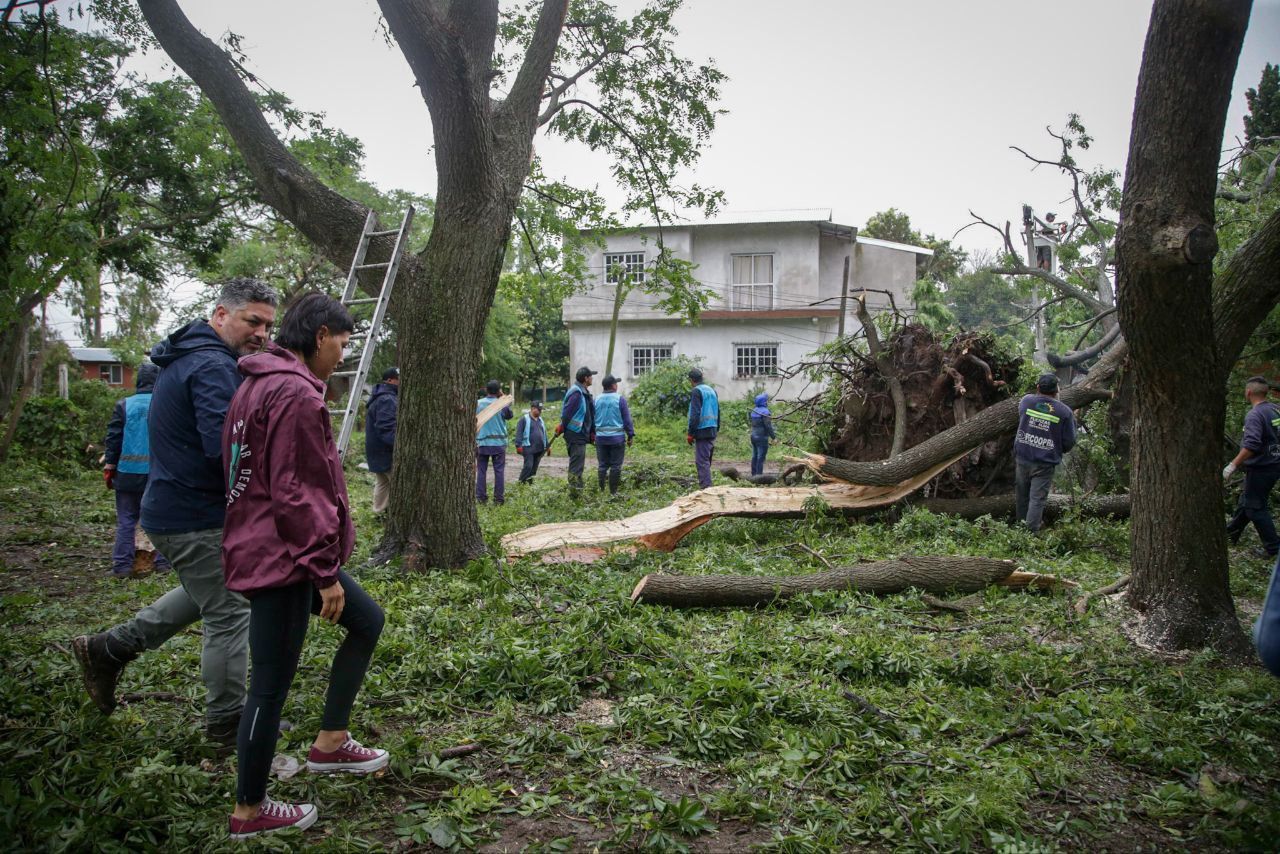 «En este lugar hay muchas familias viviendo y la cola de este tornado que vivimos, esta tormenta tan fuerte, afectó la zona norte-este del distrito, que justo tiene que ver con este barrio, y también con Don Bosco. Así que estamos trabajando, tratando de garantizar, en principio y en etapas, la seguridad de los vecinos y de las vecinas. Que no haya peligro de árboles que puedan caerse sobre las casas o de cables que puedan generar alguna situación con el tema de la electricidad»