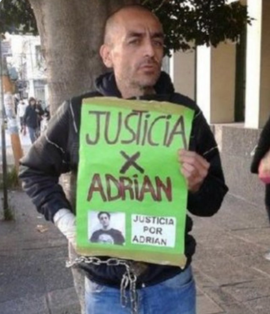 Se había internado por su propia voluntad en el Hospital Borda luego de muchos años de golpear puertas judiciales, encadenarse, hacer huelgas de hambre, llamar la atención en los medios de comunicación. El mismo se reconocía como alienado por la pérdida de su hijo, y por la indiferencia del Estado.