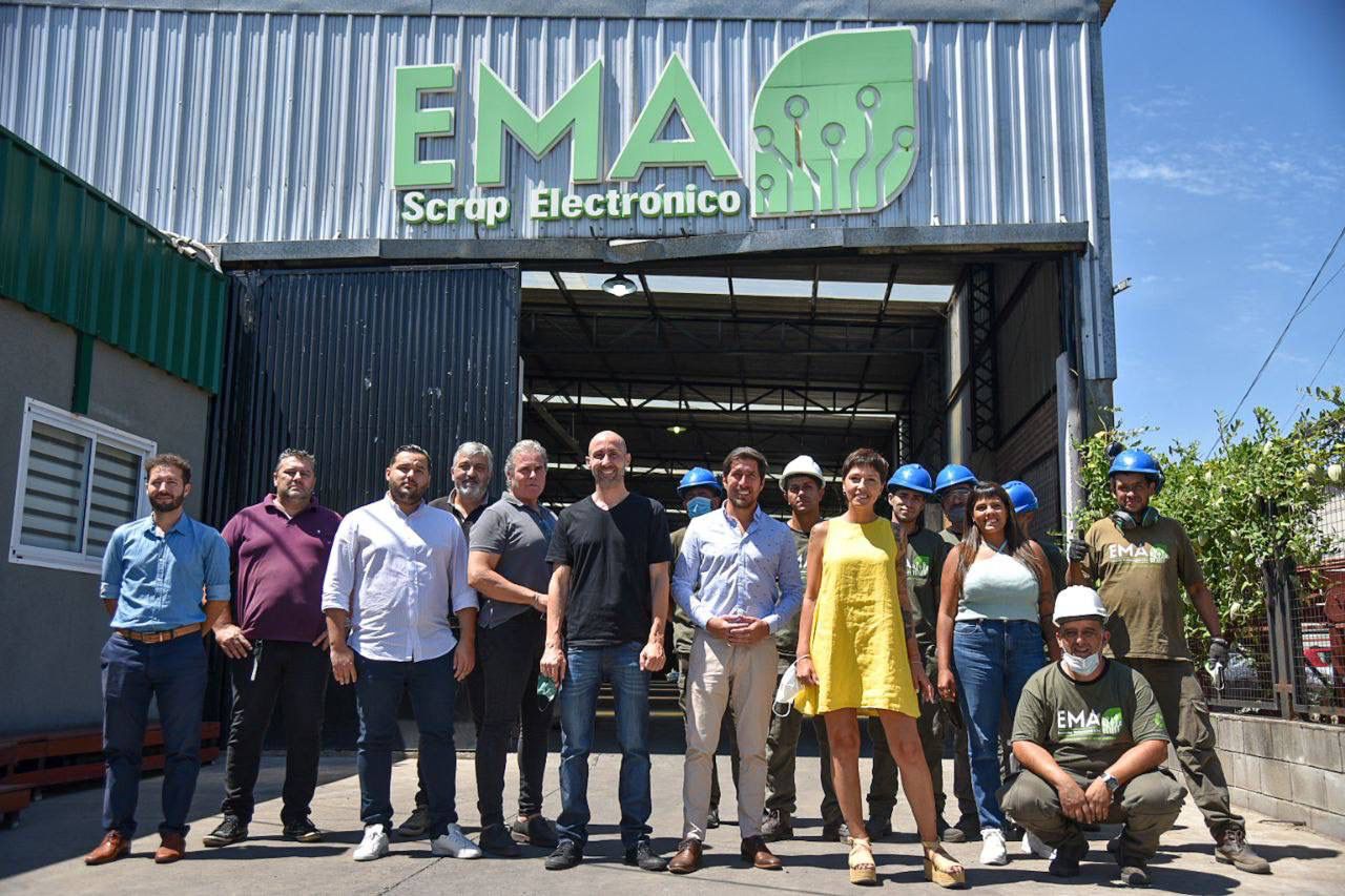 La Jefa comunal recorrió las instalaciones y el seguimiento del proceso de trasladado, acopio y disposición final de los RAEE (Residuos de Aparatos Eléctricos y Electrónicos) que se realiza en el lugar, junto a la secretaria de Ambiente y Desarrollo Sostenible, Eva Mieri; el secretario de Desarrollo Económico y Sustentable, Mario Lozano; el subsecretario de Producción y Empleo, Paul O’Shanghnessy, y los socios gerentes de la empresa EMA, Walter Soriano y Martín Saade.