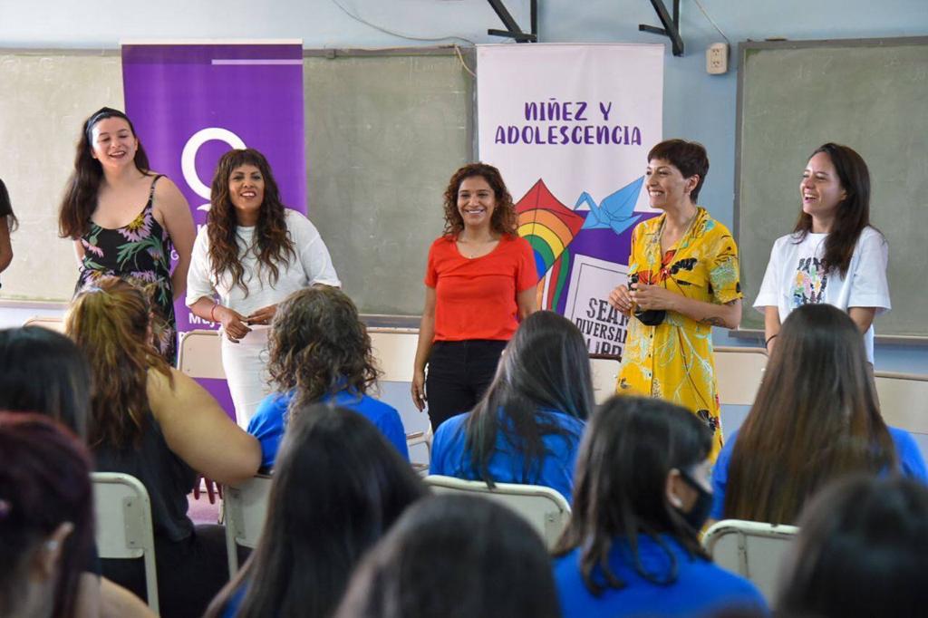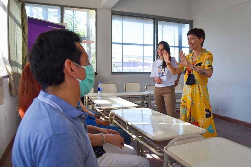 Antes de la reunión, Mayra se sumó a la charla de gestión menstrual que el equipo municipal estaba dando en una de las aulas y habló con las alumnas sobre la importancia del tema.