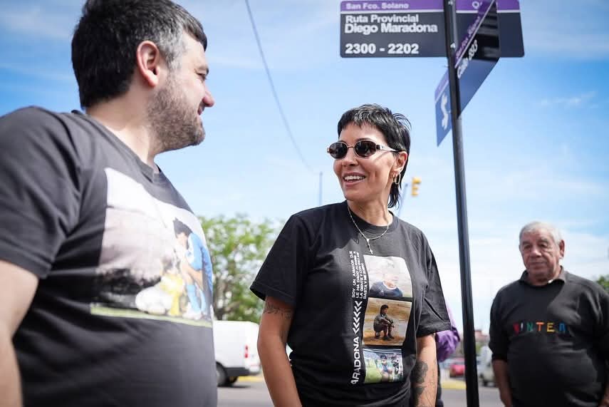 «Por todo lo que significa Diego Armando Maradona, no solo tenemos hoy este mural y cumplimos con la ley provincial para que todos los vecinos y vecinas conozcan que esta ruta se llama Diego Armando Maradona, sino que también llevamos adelante obra pública, y le ponemos su nombre porque Maradona es, para la Argentina, una esencia».