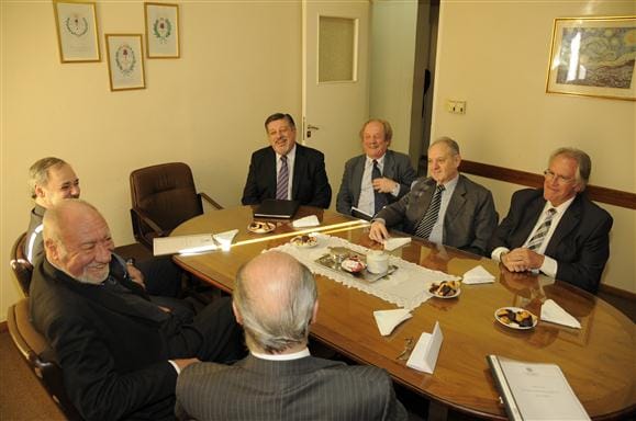 En las fotos, con Héctor Negri, ministro decano de la Suprema Corte bonaerense; los camaristas Horacio Manzi; Julio Cassanello, jueces y funcionarios locales.