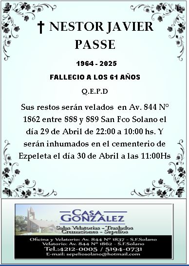 (CIQ) Passe había nacido el 20 de marzo de 1964. Había trabajado en radio Dreymar, de Quilmes, en los últimos años.