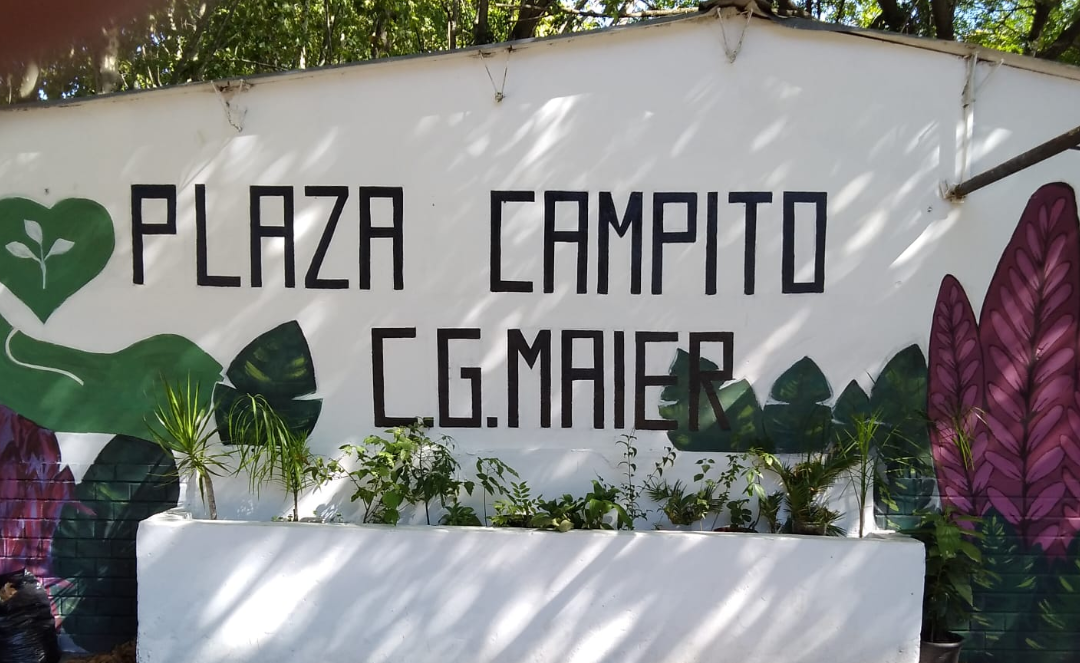 Por decisión unánime y en correcta asamblea popular, se ha decidido darle a la plaza el nombre del recordado e ilustre vecino de ese barrio Carlos Guillermo Maier, destacado educador, escritor, historiador y por muchos años Director de la Biblioteca Pública Municipal Domingo F. Sarmiento.