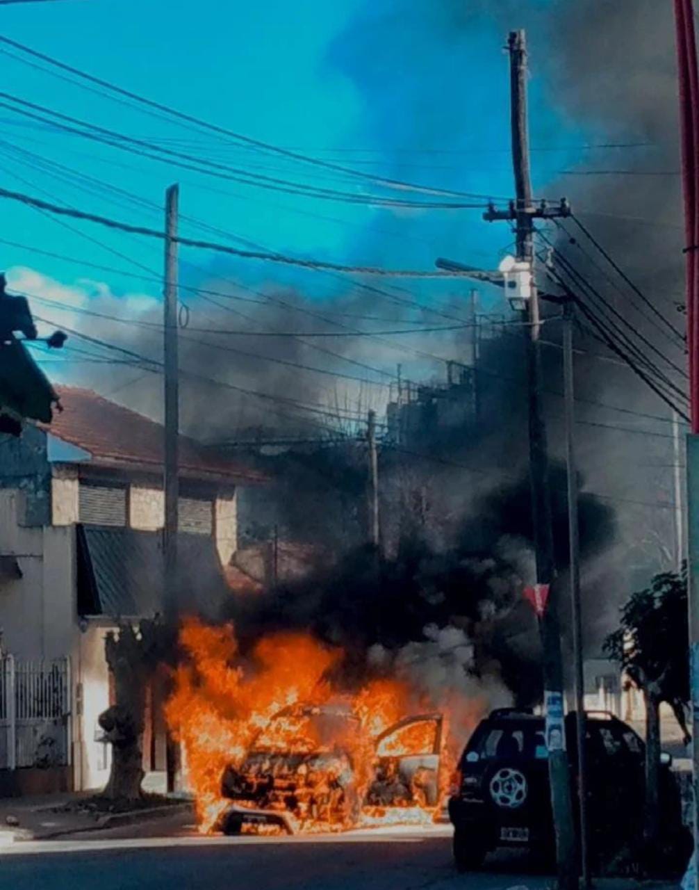 Quilmes Este Seguridad OTRO AUTO INCENDIADO Alberto Moya 2 de agosto de 2022 No hay comentarios Federico Sala Este lunes a las 13, en Lavalle y Dorrego, un auto de alquiler con chofer y acompañantes salieron ilesos, pero hubo pérdida total del vehículo, según relató a este medio Emilio Restucci, comandante 1° del Cuartel Central de Bomberos. Foto gentileza Pulpo PH.