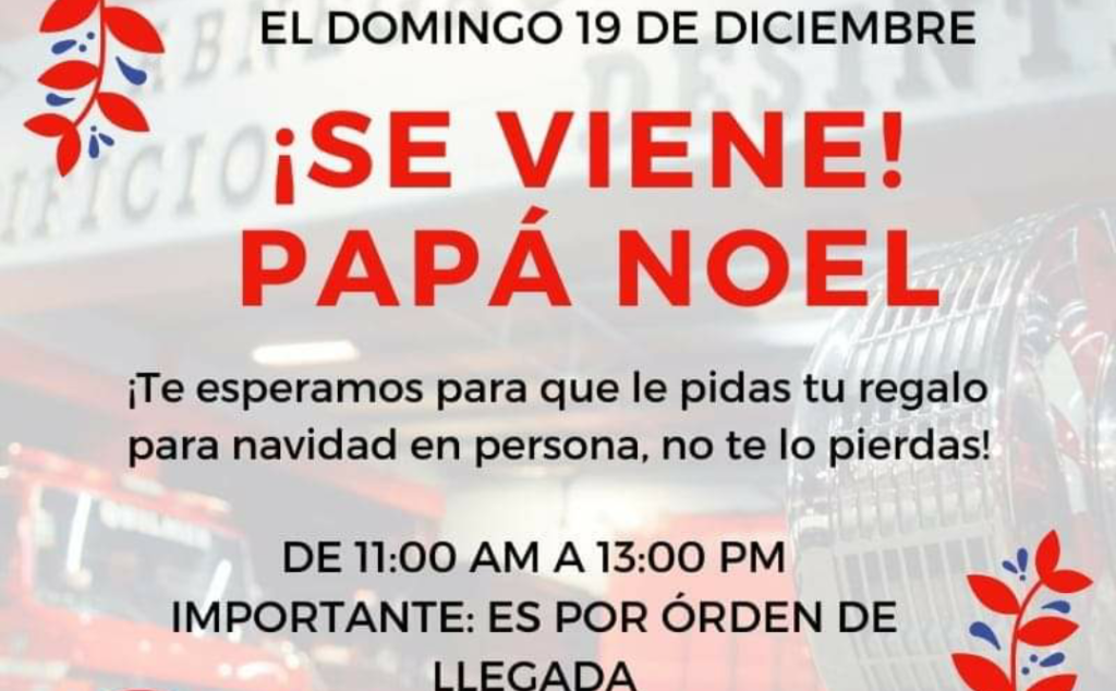 Los esperamos el domingo 19 de diciembre, de 11:00 a 13:00 para saludar y pedirle los regalos en persona a Papá Noel.