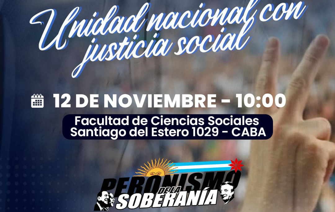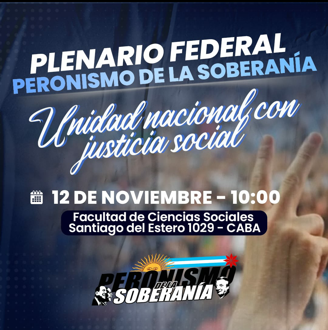 Este sábado 12, a las 10, el Peronismo de la Soberanía invita a participar y debatir en el Plenario Federal que realizará en la Facultad de Ciencias Sociales de la UBA (Santiago del Estero 1080, en Constitución).