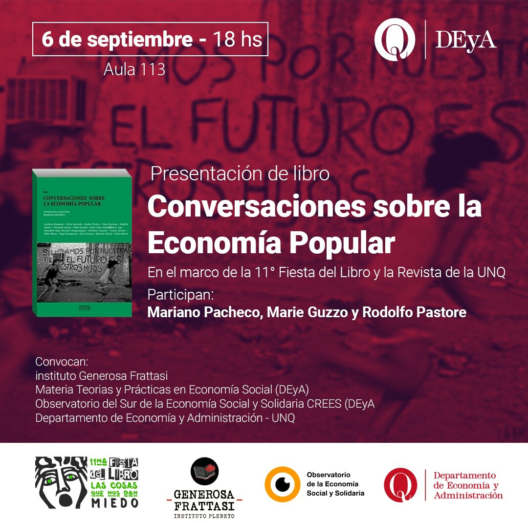 Se presentará el libro Conversaciones sobre la Economía Popular en la Fiesta del Libro y la Revista de la UNQ, los días 6, 7 y 8 de septiembre de 15 a 20.30 en la Universidad Nacional de Quilmes.