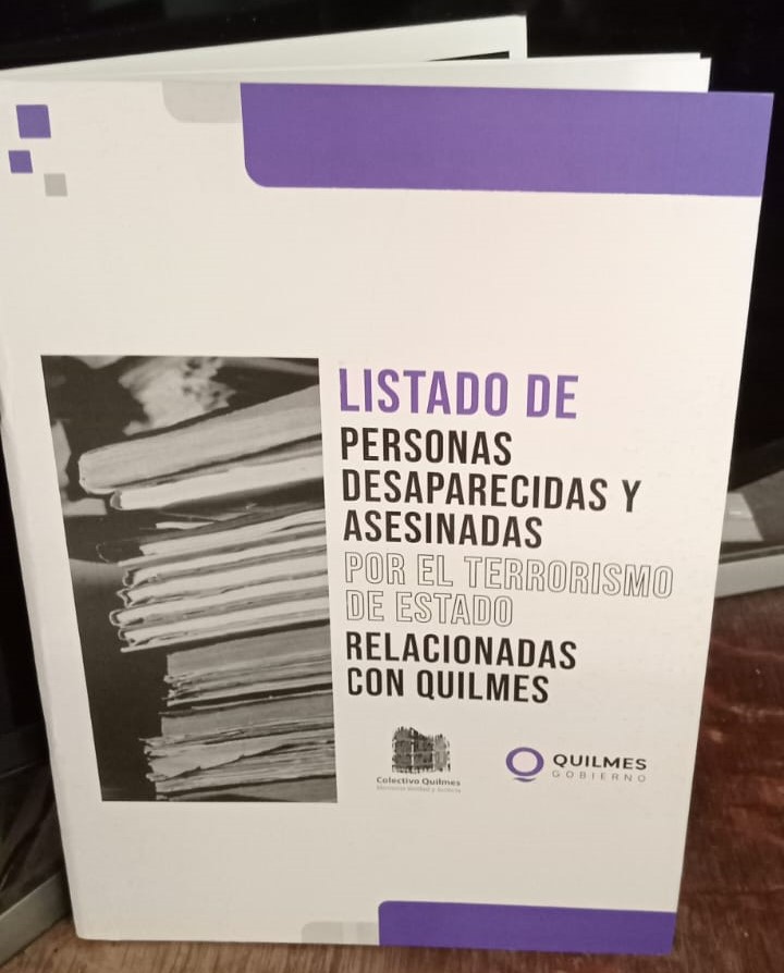 Con la presencia de la Intendente, concejales, funcionarios y allegados, el Colectivo Quilmes, Memoria, Verdad y Justicia presentó el listado de desaparecidos y o asesinados comprobados en el distrito. Se tuvieron en cuenta los centros clandestinos de detención locales, el llamado Pozo de Quilmes, y Puesto Vasco, hoy museos, y distintos puntos ocultos, que funcionaron como cárceles provisorias. También hay mención de localizaciones del llamado circuito Camps, que incluye lugares de detención que iban rotando.