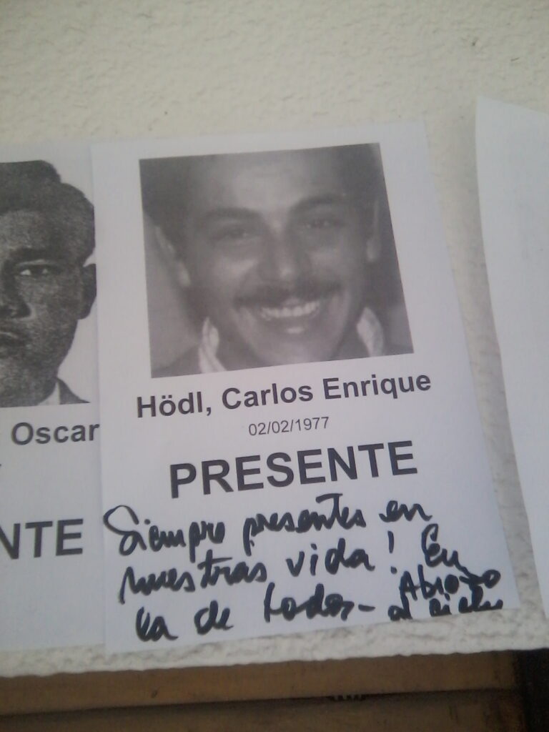 El frente del ccd fue tapizado con las fotos de las víctimas que tuvieron relación con Quilmes, sobre la que los asistentes pudieron intervenir con sus escritos.
