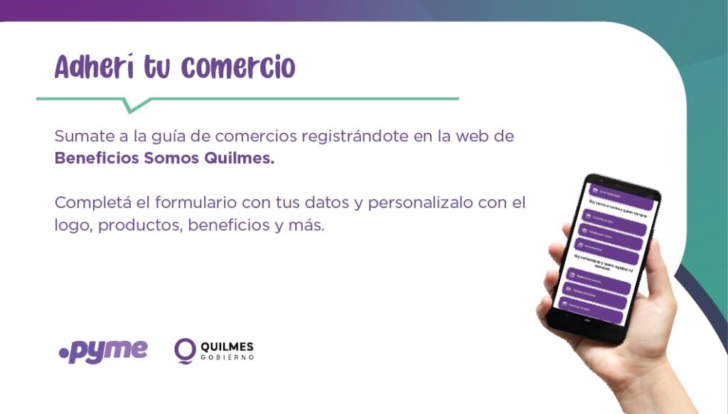 El Municipio de Quilmes informa que lanzará la Tarjeta de Beneficios a través del programa Beneficios Somos Quilmes. La Tarjeta de Beneficios tiene como objetivo promover el intercambio comercial local, fomentar el consumo, incrementar las ventas de los comercios registrados de la ciudad cuidando la economía de los vecinos y vecinas de Quilmes.