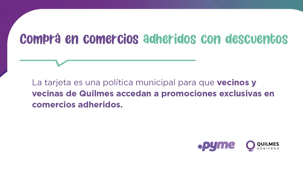 El Municipio de Quilmes informa que lanzará la Tarjeta de Beneficios a través del programa Beneficios Somos Quilmes. La Tarjeta de Beneficios tiene como objetivo promover el intercambio comercial local, fomentar el consumo, incrementar las ventas de los comercios registrados de la ciudad cuidando la economía de los vecinos y vecinas de Quilmes.