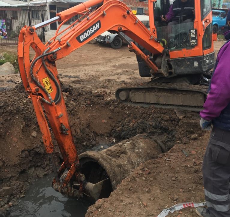 Personal de la Subsecretaría de Agua, Cloacas y Saneamiento Hídrico, con camiones y maquinaria pesada trabajaron en la colocación de caños de 600mm sobre la calle Balcarce, desde Lora hasta Syerra; y en la limpieza y a rectificación de zanjas, con la colocación de caños 400mm en las entradas de vehículos; además de la limpieza de canal (chanchería) y de conducto hacia la desembocadura.