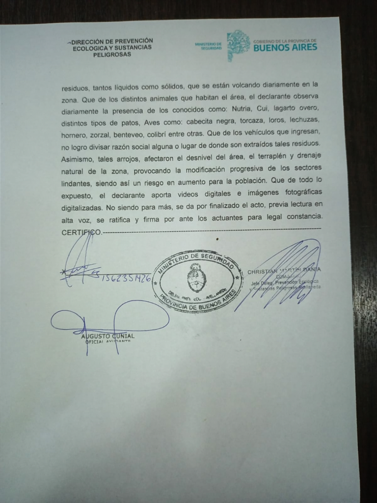 Se han presentado ya varios pedidos de informes al HCD, y secretarías de ambiente y fiscalización, a nivel municipal y provincial y se llegó a Policía ecológica.