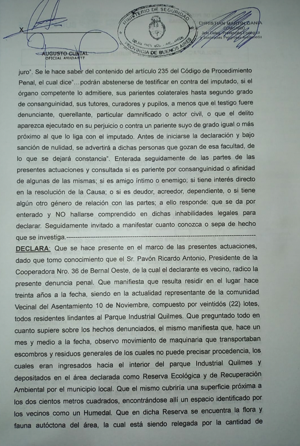 Se han presentado ya varios pedidos de informes al HCD, y secretarías de ambiente y fiscalización, a nivel municipal y provincial y se llegó a Policía ecológica.