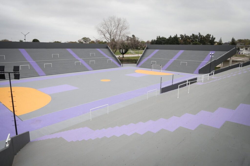 En el microestadio se ejecutan obras de refacción y puesta en valor en el edificio principal, en los vestuarios (también en el sector visitantes bajo tribuna), los anexos, la plaza de acceso principal, la cancha multideporte con el sellado e impermeabilización de sus tribunas, los desagües cloacales, entre otras acciones como la instalación de bancos, cestos de residuos, luminarias LED, forestación y parquización con 85 plantas, 600 m2 de césped y 9 árboles.