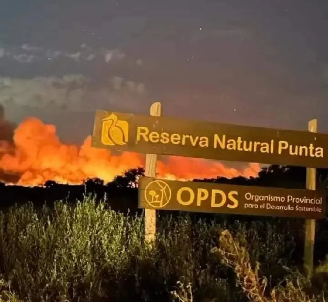 Autoridades del Municipio de Ensenada, Bomberos de Magdalena, Berazategui, El Pato y Berisso junto a guardaparques a cargo de la Reserva coordinan tareas para evitar que el fuego llegue a la zona habitada.