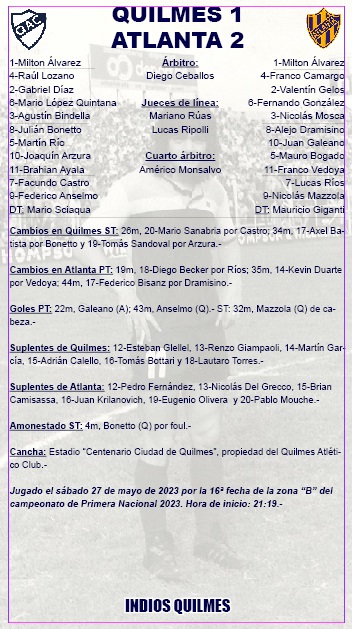 En un partido disputado, Quilmes intentó pero falló mucho en el momento de la definición. No la bajó para pisarla y pensar y Atlanta se aprovechó de una defensa muy pobre.