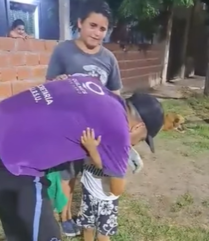Por eso esta vez ellos decidieron agasajarlo y le llevaron una camiseta de fútbol de Quilmes, para su gran alegría.