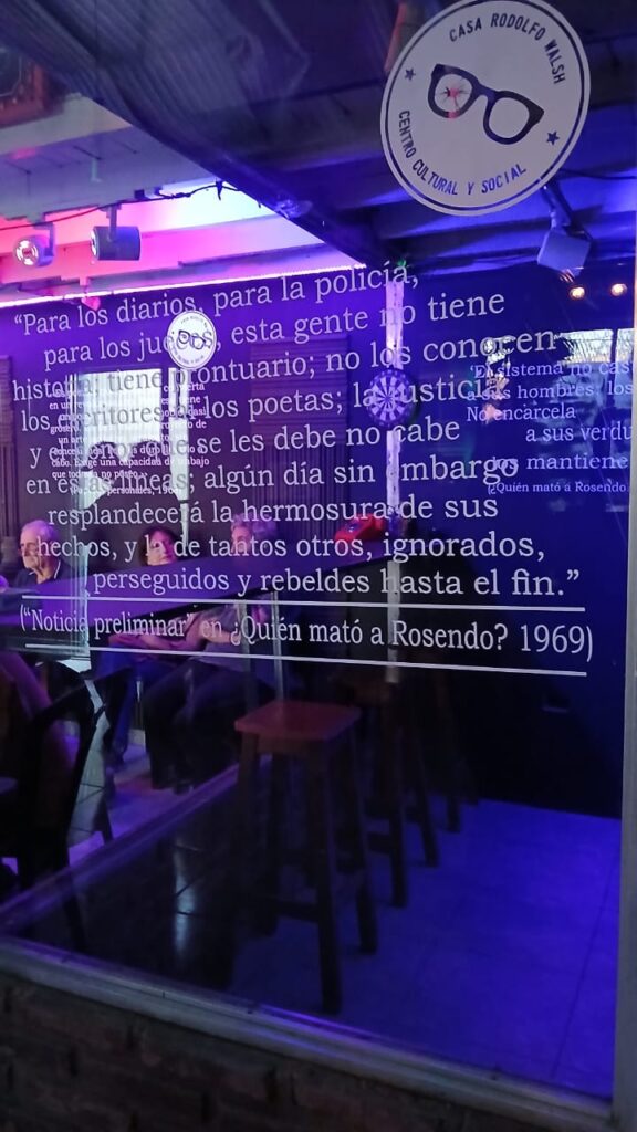 Todo el local, pintado de negro mate en su interior, está decorado con algunas de las frases más emblemáticas o profundas del periodista Rodolfo Walsh, como las clásicas de que «El periodismo es libre o es una farsa» y «La verdad se milita».