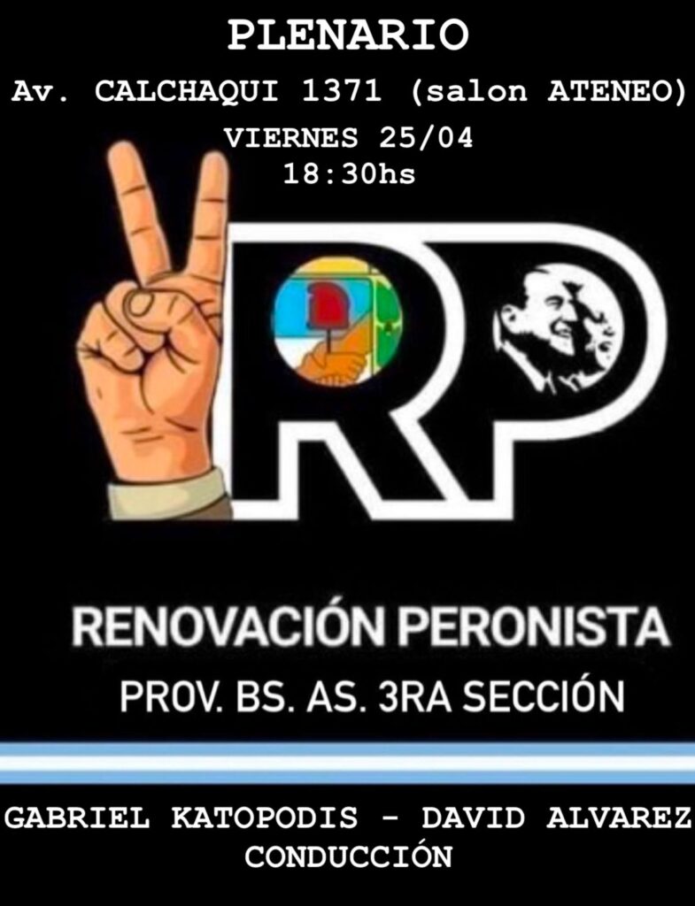 Se hace el plenario instalando la mesa en Quilmes para ir a discutir en una mesa de unidad con lo que es la mesa de Axel, creo que es lo mejor que podemos hacer, hablar siempre de unidad y no de distanciamiento. Es en sí esto, y vamos a contar con la presencia del ministro Katopodis, David Alvarez, quien te habla y una concurrencia de un montón de compañeros que han estado guardados en el sentido, no guardados, sino guardados y limitados, con el pie arriba del hombro para no ejercer y ejecutar acciones militantes dentro del territorio. Acá se ve que siempre hemos hablado de no estar manejando dádivas para los vecinos y no manejando derechos.