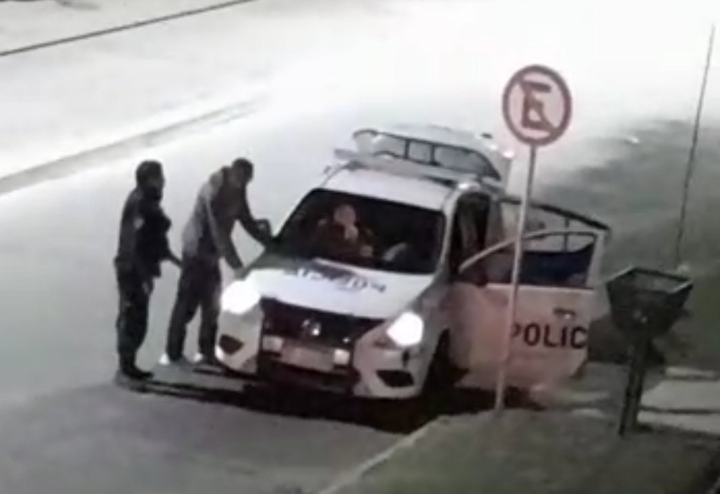 Alevosa la pachorra del que baja del auto poniéndose el pulover. ¡Ejemplo para Academia de Policías!