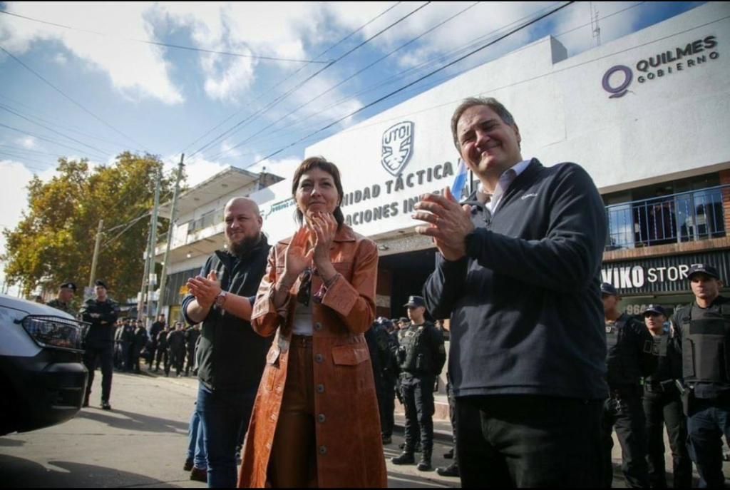 En un despliegue de efectivos policiales y nuevas unidades de transporte, Mayra Mendoza inauguró una nueva base operativa de la UTOI en La Florida junto al jefe de Gabinete del Ministerio de Seguridad bonaerense, Carlos Montaña, y el subsecretario de Formación y Desarrollo Profesional, Javier Alonso.