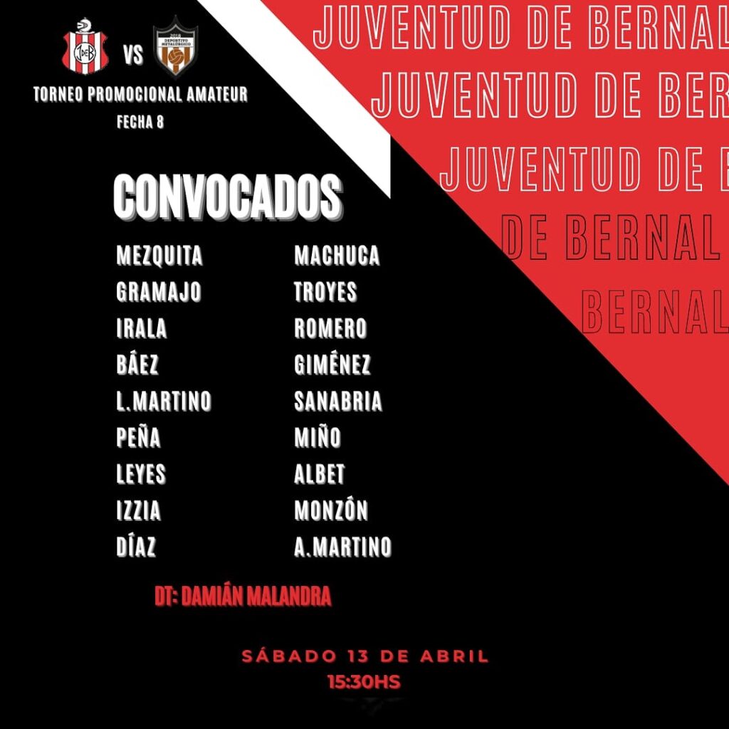 Juventud de Bernal vuelve a jugar como local en el torneo Promocional Amateur. Lo hará si las condiciones climáticas lo permiten. La cita es a las 15:30 en la cancha auxiliar de Berazategui ante Deportivo Metalúrgico.
