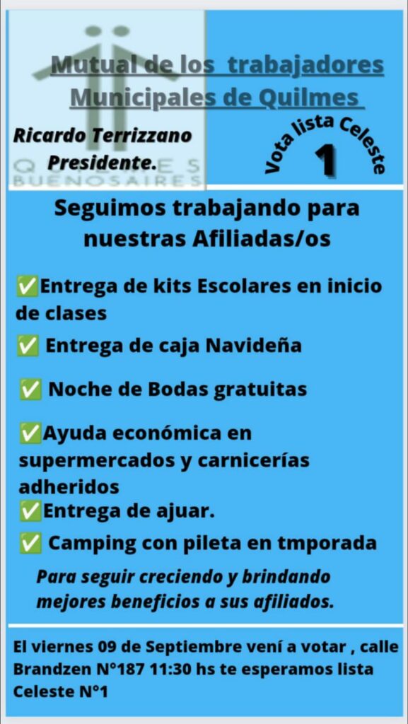 La lista oficialista de Ricardo Terrizzano apuesta a la continuidad de su gestión con hechos concretos: los beneficios obtenidos para sus afiliados y familias.