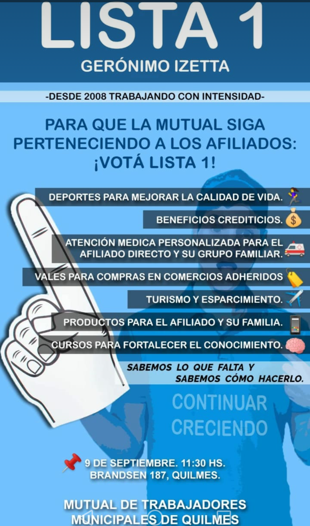 Este viernes 9 de septiembre, los invitan a votar la Lista 1, Gerónimo Izetta.