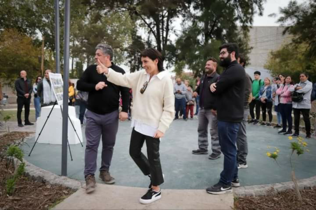 Mayra Mendoza encabezó este martes el acto de inauguración de la plazoleta Tamborcito de Tacuarí, en Aimé Tschiffely y Sosa del Valle, en el barrio Las Rosas, de Quilmes Oeste. La obra, que se ejecutó con fondos y personal de la Secretaría de Servicios Públicos del Municipio, consistió en: reconstrucción de veredas; colocación de nuevos mobiliarios (bancos y mesas), juegos de plaza, equipamientos para realización de ejercicio físico, y cestos de basura; realización de todo el tendido eléctrico nuevo, colocación de columnas y artefactos lumínicos LED; colocación de arbustos y plantas.