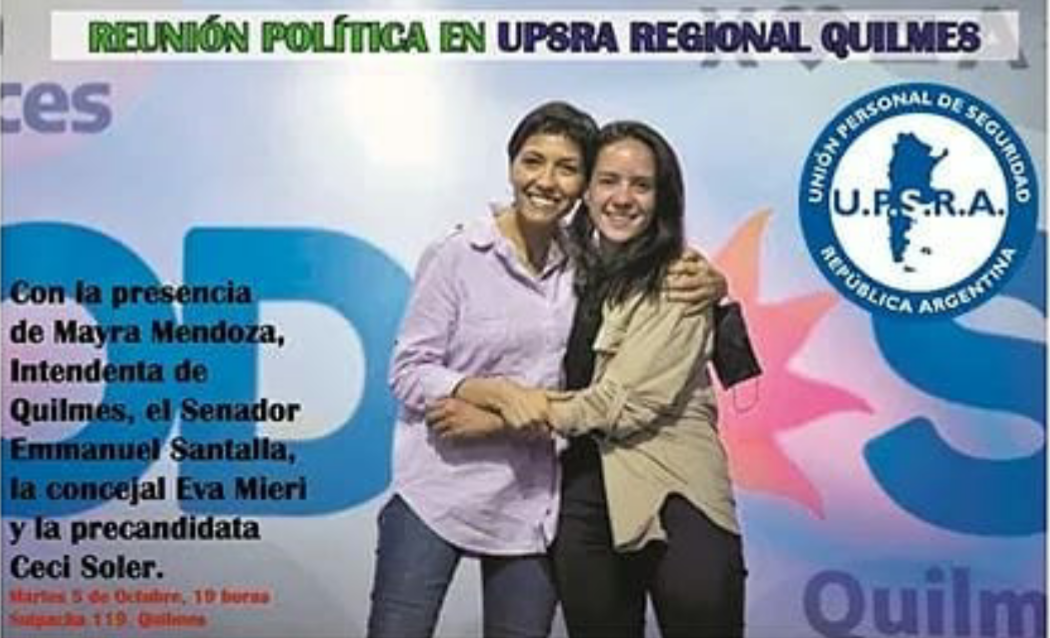 El Sindicato de Personal de Seguridad de Argentina, delegación Quilmes, recibe hoy a la intendente, el senador Emmanuel Santalla, la concejal Eva Mieri y la candidata a concejal Cecilia Soler.