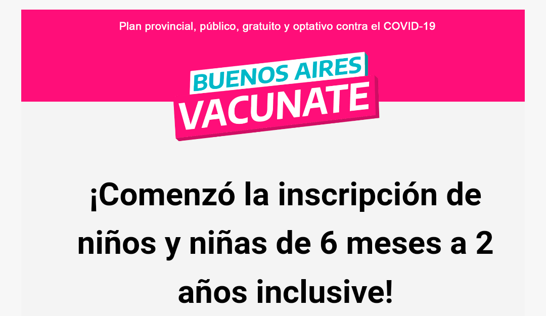 Los niños y niñas de entre 6 meses y 2 años inclusive ya pueden registrarse para recibir la vacuna contra el Covid -19 en la Provincia. El adulto o adulta responsable deberá completar el formulario a través de la web.