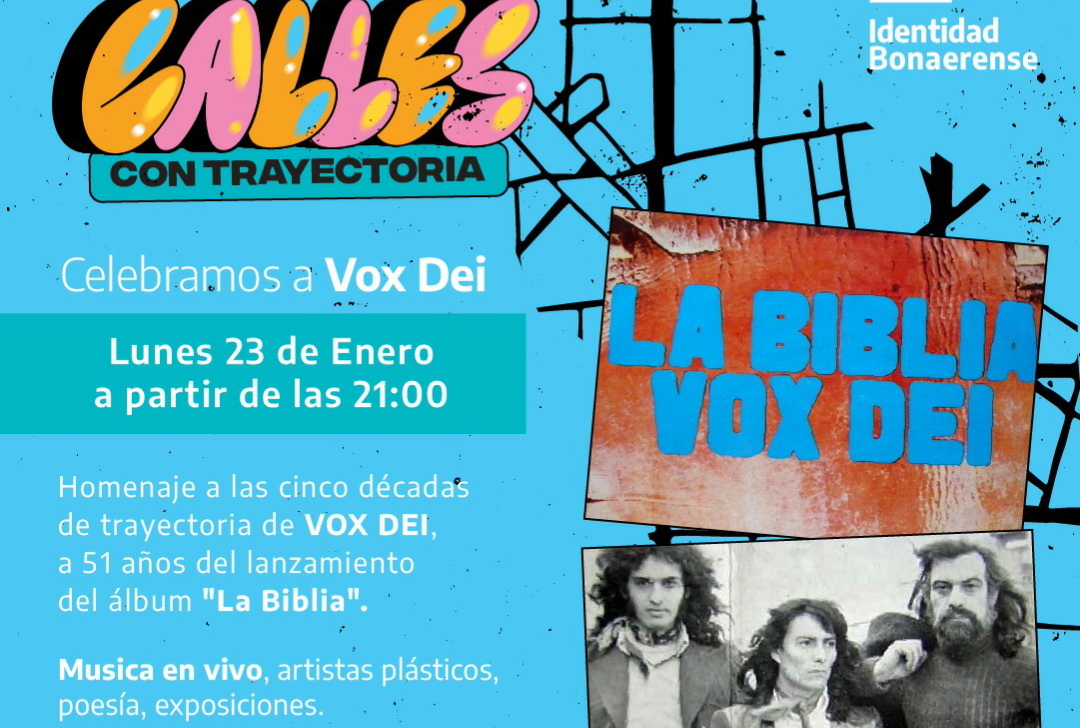 La jornada es articulada con la Municipalidad y las productoras Intimix y Pateando Barrios a partir de una iniciativa del Instituto Cultural de la Provincia, a través de su Unidad Identidad Bonaerense, para la edición de Calles con Trayectoria, que homenajea a personajes y referentes de la historia bonaerense. Es el caso de Vox Dei, banda fundacional del rock argentino que acaba de pasar el medio siglo de su creación.